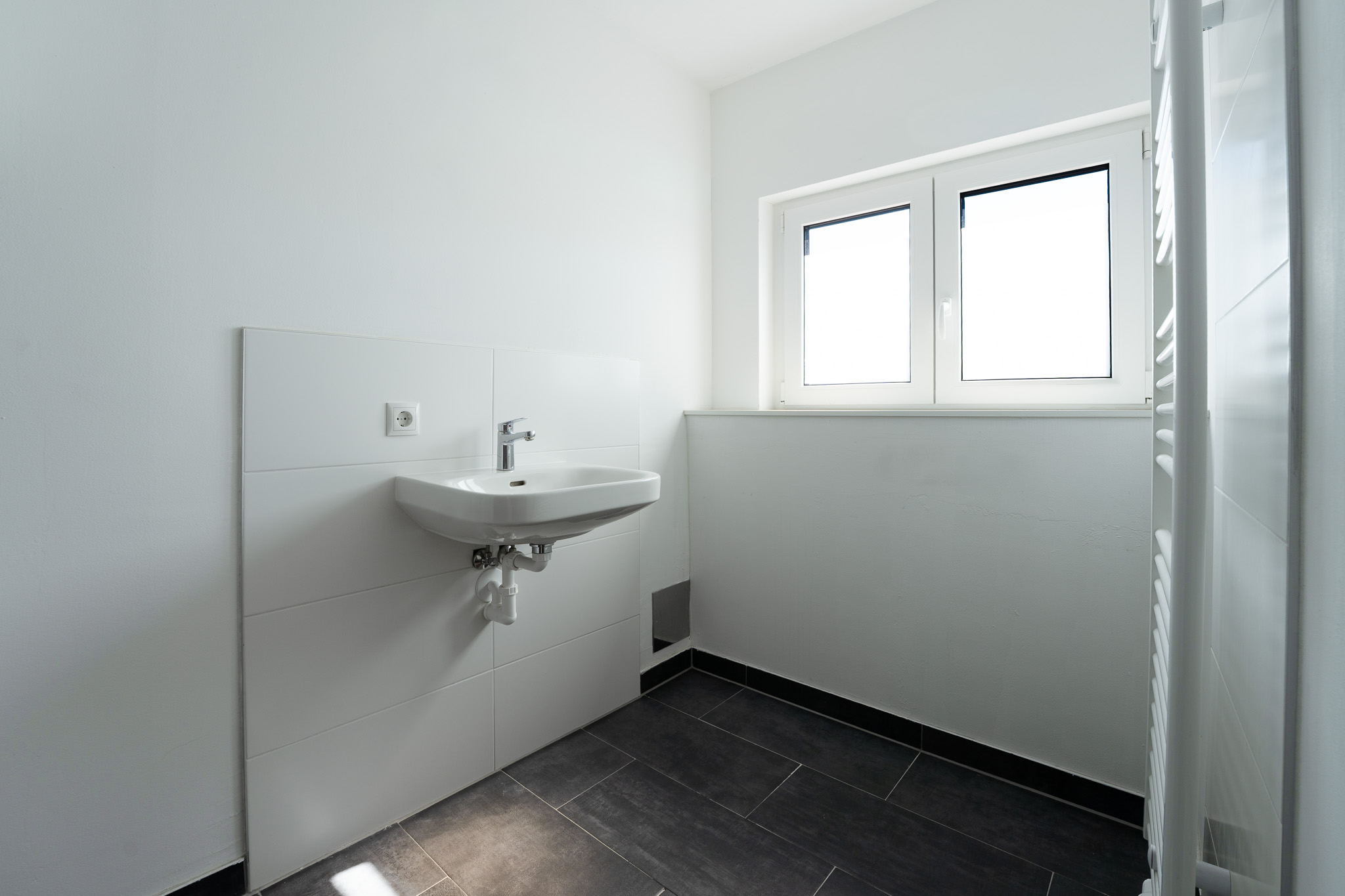 - Badezimmer mit Fenster, Dusche, WC und Waschmaschinenanschluss