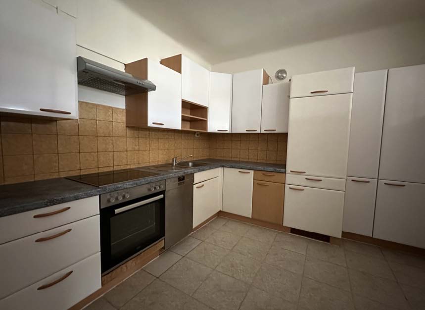 Diese helle und großzügig geschnittene Wohnung befindet sich im 4. Obergeschoss eines zentral gelegenen Wohnhauses in der Wiener Straße 80 und ist bequem über einen Lift erreichbar. Die ca. 87 m² große Wohnfläche teilt sich auf in einen zentralen Vorraum, drei separat begehbare Zimmer, eine Küche, ein Badezimmer, ein getrenntes WC sowie einen praktischen Abstellraum. Das Badezimmer ist mit einer Eckdusche ausgestattet und verfügt über einen Waschmaschinenanschluss, weist jedoch derzeit Renovierungsbedarf auf. Die separate Küche ist mit einer älteren Küchenzeile eingerichtet, die Gebrauchsspuren zeigt, und bietet Platz für einen kleinen Esstisch. Die drei Wohnräume sind lichtdurchflutet und vielseitig nutzbar, sei es als Schlafzimmer, Wohnbereich oder Homeoffice. Ein Kellerabteil ist der Wohnung zugeordnet. Die Warmwasseraufbereitung erfolgt mittels elektrischem Boiler, beheizt wird über eine Gas-Einzeltherme (die Abrechnung erfolgt direkt mit dem Anbieter). Ein fixer Parkplatz ist nicht zugeordnet, direkt vor dem Haus befinden sich jedoch allgemeine Parkplätze, die je nach Verfügbarkeit genutzt werden können.